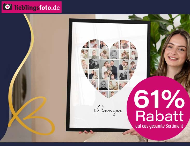 Mach mehr aus deinen Momenten: 61 % Rabatt auf das komplette Lieblingsfoto-Sortiment